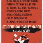 Party leaders call for action on student demands, including full right of association & structural reform of educationAwami Workers Party (AWP) expresses its full support for the Student Solidarity March being organized by progressive student groups (including PrSF, PSC, RSF, SAC and others) in cities across Pakistan on November 29 and asks party workers to…